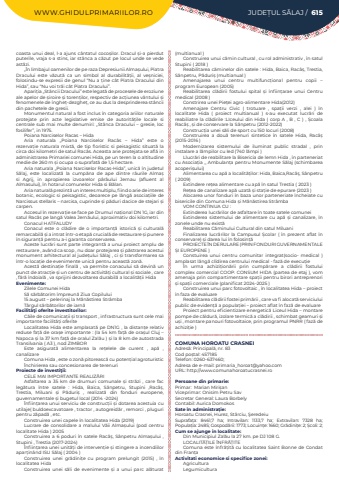 WWW.GHIDULPRIMARIILOR.RO JUDE%u021aUL S%u0102LAJ / 615coasta unui deal, l-a ajuns c%u00e2ntatul coco%u0219ilor. Dracul %u0219i-a pierdut puterile, vraja s-a stins, iar st%u00e2nca a c%u0103zut pe locul unde se vede ast%u0103zi.%u201e%u00cen limbajul oamenilor de pe raza Depresiunii Alma%u0219ului, Piatra Dracului este v%u0103zut%u0103 ca un simbol al durabilit%u0103%u021bii, al ve%u0219niciei, folosindu-se expresii de genul %u201cNu a %u021bine c%u00e2t Piatra Dracului din Hida%u201d, sau %u201cNu voi tr%u0103i c%u00e2t Piatra Dracului%u201d.Apari%u021bia %u201eSt%u00e2ncii Dracului%u201d este legat%u0103 de procesele de eroziune ale apelor de %u0219iroire %u0219i toren%u021bilor, respectiv de ac%u021biunea v%u00e2ntului %u0219i fenomenele de %u00eenghe%u021b-dezghe%u021b, ce au dus la desprinderea st%u00e2ncii din pachetele de gresii.Monumentul natural a fost inclus %u00een categoria ariilor naturale protejate prin acte legislative emise de autorit%u0103%u021bile locale si centrale sub mai multe denumiri: %u201eSt%u00e2nca Dracului %u2013 gresie, loc fosilifer%u201d, in 1975.Poiana Narciselor Racas %u2013 HidaAria naturala %u201ePoiana Narciselor Rac%u00e2s %u2013 Hida%u201d este o rezerva%u021bie naturala mixt%u0103, de tip floristic si peisagistic situat%u0103 la circa doi kilometri de satul Rac%u00e2s. Aceasta arie protejata se afl%u0103 in administrarea Primariei comunei Hida, pe un teren la o altitudine medie de 260 m %u0219i ocupa o suprafat%u0103 de 1,5 hectare.Aria naturala %u201ePoiana Narciselor Racas-Hida%u201d, unic%u0103 %u00een judetul S%u0103laj, este localizat%u0103 la cump%u0103na de ape dintre r%u00e2urile Alma%u0219 si Agrij, in apropierea izvoarelor p%u00e2r%u00e2ului Jernau (afluent al Almasului), %u00een hotarul comunelor Hida si B%u0103lan.Aria natural%u0103 prezint%u0103 un interes multiplu, fiind o arie de interes botanic, ecologic si peisagistic, deoarece pe l%u00e2ng%u0103 asocia%u021biile de Narcissus stellaris %u2013 narcisa, cuprinde %u0219i p%u0103duri dacice de stejari %u0219i carpen.Accesul %u00een rezerva%u021bie se face pe Drumul na%u021bional DN 1G, iar din satul Rac%u00e2s pe lang%u0103 Valea Jern%u0103ului, aproximativ doi kilometri.Conacul HATFALUDYConacul este o cl%u0103dire de o importan%u021b%u0103 istoric%u0103 %u0219i cultural%u0103 remarcabil%u0103 %u0219i a intrat %u00eentr-o etap%u0103 crucial%u0103 de restaurare %u0219i punere %u00een siguran%u021b%u0103 pentru a-i garanta conservarea.Aceste lucr%u0103ri sunt parte integrant%u0103 a unui proiect amplu de restaurare , av%u00e2nd ca scop , nu doar protejarea %u0219i p%u0103strarea acestui monument arhitectural al jude%u021bului S%u0103laj , ci %u0219i transformarea sa %u00eentr-o loca%u021bie de evenimente unic%u0103 pentru aceast%u0103 zon%u0103.Acest%u0103 destina%u021bie final%u0103 , va permite conacului s%u0103 devin%u0103 un punct de atrac%u021bie %u0219i un centru de activit%u0103%u021bi cultural %u0219i sociale , care , f%u0103r%u0103 %u00eendoial%u0103 , va sprijini dezvoltarea durabil%u0103 a localit%u0103%u021bii HidaEvenimente:Zilele Comunei HidaS%u0103 s%u0103rb%u0103torim %u00eempreun%u0103 Ziua Copilului15 august %u2013 pelerinaj la M%u0103n%u0103stirea Str%u00e2mbaT%u00e2rgul s%u0103rb%u0103torilor de iarn%u0103Facilit%u00e3%u0163i oferite investitorilor:C%u0103ile de comunica%u021bii %u0219i transport , infrastructura sunt cele mai importante facilit%u0103%u021bi oferite Localitatea Hida este amplasat%u0103 pe DN1G , la distan%u021be relativ reduse fa%u021b%u0103 de ora%u0219e importante : (la 54 km fa%u021b%u0103 de ora%u0219ul Cluj %u2013 Napoca %u0219i la 37 km fa%u021b%u0103 de oralul Zal%u0103u ) %u0219i la 8 km de autostrada Transilvania ( A3 ), nod ZIMBOREste asigurat%u0103 alimentarea la re%u021belele de curent , ap%u0103 , canalizareComuna Hida , este o zon%u0103 pitoreasc%u0103 cu poten%u021bial agroturistic%u00cenchirierea sau concesionarea de terenuriProiecte de investi%u0163ii:CELE MAI IMPORTANTE REALIZ%u0102RIAsfaltarea a 35 km de drumuri comunale %u0219i str%u0103zi , care fac leg%u0103tura %u00eentre satele : Hida, Baica, S%u00e2npetru, Stupini ,Rac%u00e2%u0219, Trestia, Miluani %u0219i P%u0103duri%u0219 , realizat%u0103 din fonduri europene, guvernamentale %u0219i bugetul local (2014 -2024)%u00cenfiin%u021barea unui serviciu de construc%u021bii %u0219i dotarea acestuia cu utilaje( buldoexcavatoare , tractor , autogreid%u0103r , remorci , pluguri pentru z%u0103pad%u0103 , etc.Construirea unei capele %u00een localitatea Hida (2019)Lucrare de consolidare a malului V%u0103ii Alma%u0219ului (pod centru localitate Hida ) 2005Construirea a 6 poduri %u00een satele Rac%u00e2%u0219, S%u00e2npetru Alma%u0219ului , Stupini , Trestia (2017-2024)%u00cenfiin%u021barea unei unit%u0103%u021bi de interven%u021bie %u0219i stingere a incendiilor apar%u021bin%u00e2nd ISU S%u0103laj ( 2004 )Construirea unei gr%u0103dini%u021be cu program prelungit (2015) , %u00een localitatea%u00a0HidaConstruirea unei s%u0103li de evenimente %u0219i a unui parc al%u0103turat (multianual )Construirea unui c%u0103min cultural , cu rol administrativ , %u00een satul Stupini ( 2018 )Reabilitarea c%u0103minelor din satele : Hida, Baica, Rac%u00e2%u0219, Trestia, S%u00e2npetru, P%u0103duri%u0219 (multianual )Amenajarea unui centru multifunc%u021bional pentru copii %u2013 program European (2005)Reabilitarea cl%u0103dirii fostului spital %u0219i %u00eenfiin%u021barae unui Centru medical (2008 )Constrirea unei Pie%u021bei agro-alimentare Hida(2012)Amenajare Centru Civic ( trotuare , spa%u021bii verzi , alei ) %u00een localitate Hida ( proiect multianual ) s-au executat lucr%u0103ri de reabiliatre la cl%u0103dirile :LIceului din Hida ( corp A , B , C ) , %u0218coala Rac%u00e2%u0219 , %u0219i de conservare la S%u00e2npetru (2012-2022)Construc%u021bia unei s%u0103li de sport cu 150 locuri (2008)Construirea a dou%u0103 terenuri sintetice %u00een satele Hida, Rac%u00e2%u0219 (2015-2016 )Modernizarea sistemului 