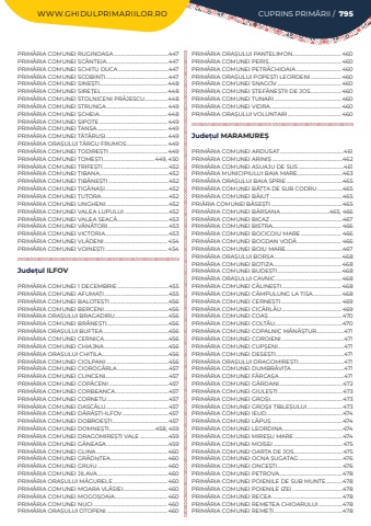 WWW.GHIDULPRIMARIILOR.RO CUPRINS PRIM%u0102RII / 795PRIM%u00c3RIA COMUNEI RUGINOASA ..............................................447PRIM%u00c3RIA COMUNEI SC%u00c2NTEIA....................................................447PRIM%u00c3RIA COMUNEI SCHITU DUCA ..........................................447PRIM%u00c3RIA COMUNEI SCOBIN%u021aI.....................................................447PRIM%u00c3RIA COMUNEI SINE%u0218TI.........................................................448PRIM%u00c3RIA COMUNEI SIRE%u021aEL .......................................................448PRIM%u00c3RIA COMUNEI STOLNICENI PR%u00c3JESCU...................448PRIM%u00c3RIA COMUNEI STRUNGA ...................................................449PRIM%u00c3RIA COMUNEI %u0218CHEIA.........................................................448PRIM%u00c3RIA COMUNEI %u0218IPOTE .........................................................449PRIM%u00c3RIA COMUNEI TANSA...........................................................449PRIM%u00c3RIA COMUNEI T%u00c3T%u00c3RU%u0218I....................................................449PRIM%u00c3RIA ORA%u0218ULUI T%u00c2RGU FRUMOS..................................449PRIM%u00c3RIA COMUNEI TODIRE%u0218TI .................................................449PRIM%u00c3RIA COMUNEI TOME%u0218TI...........................................449, 450PRIM%u00c3RIA COMUNEI TRIFE%u0218TI.......................................................452PRIM%u00c3RIA COMUNEI %u021aIBANA..........................................................452PRIM%u00c3RIA COMUNEI %u021aIB%u00c3NE%u0218TI...................................................452PRIM%u00c3RIA COMUNEI %u021aIG%u00c3NA%u0218I.....................................................452PRIM%u00c3RIA COMUNEI %u021aU%u021aORA........................................................452PRIM%u00c3RIA COMUNEI UNGHENI ....................................................452PRIM%u00c3RIA COMUNEI VALEA LUPULUI .....................................452PRIM%u00c3RIA COMUNEI VALEA SEAC%u00c3...........................................453PRIM%u00c3RIA COMUNEI V%u00c2N%u00c3TORI...................................................453PRIM%u00c3RIA COMUNEI VICTORIA.....................................................453PRIM%u00c3RIA COMUNEI VL%u00c3DENI..................................................... 454PRIM%u00c3RIA COMUNEI VOINE%u0218TI .................................................... 454Jude%u021bul ILFOVPRIM%u00c3RIA COMUNEI 1 DECEMBRIE...........................................455PRIM%u00c3RIA COMUNEI AFUMA%u021aI......................................................455PRIM%u00c3RIA COMUNEI BALOTE%u0218TI .................................................456PRIM%u00c3RIA COMUNEI BERCENI......................................................456PRIM%u00c3RIA ORA%u0218ULUI BRAGADIRU.............................................456PRIM%u00c3RIA COMUNEI BR%u00c3NE%u0218TI....................................................456PRIM%u00c3RIA ORA%u0218ULUI BUFTEA.......................................................456PRIM%u00c3RIA COMUNEI CERNICA......................................................456PRIM%u00c3RIA COMUNEI CHIAJNA......................................................456PRIM%u00c3RIA ORA%u0218ULUI CHITILA........................................................456PRIM%u00c3RIA COMUNEI CIOLPANI ....................................................456PRIM%u00c3RIA COMUNEI CIOROG%u00c2RLA...........................................457PRIM%u00c3RIA COMUNEI CLINCENI.....................................................457PRIM%u00c3RIA COMUNEI COP%u00c3CENI ..................................................457PRIM%u00c3RIA COMUNEI CORBEANCA.............................................457PRIM%u00c3RIA COMUNEI CORNETU....................................................457PRIM%u00c3RIA COMUNEI DASC%u00c3LU.....................................................457PRIM%u00c3RIA COMUNEI D%u00c3R%u00c3%u0218TI-ILFOV.......................................457PRIM%u00c3RIA COMUNEI DOBROE%u0218TI...............................................457PRIM%u00c3RIA COMUNEI DOMNE%u0218TI.......................................458, 459PRIM%u00c3RIA COMUNEI DRAGOMIRE%u0218TI VALE ........................459PRIM%u00c3RIA COMUNEI G%u00c3NEASA....................................................459PRIM%u00c3RIA COMUNEI GLINA............................................................460PRIM%u00c3RIA COMUNEI GR%u00c3DI%u0219TEA................................................460PRIM%u00c3RIA COMUNEI GRUIU...........................................................460PRIM%u00c3RIA COMUNEI JILAVA...........................................................460PRIM%u00c3RIA ORA%u0218ULUI M%u00c3GURELE..............................................460PRIM%u00c3RIA COMUNEI MOARA VL%u00c3SIEI.....................................460PRIM%u00c3RIA COMUNEI MOGO%u0218OAIA............................................460PRIM%u00c3RIA COMUNEI NUCI ..............................................................460PRIM%u00c3RIA ORA%u0218ULUI OTOPENI...................................................460PRIM%u00c3RIA ORA%u0218ULUI PANTELIMON.........................................460PRIM%u00c3RIA COMUNEI PERI%u0218.............................................................460PRIM%u00c3RIA COMUNEI PETR%u00c3CHIOAIA......................................460PRIM%u00c3RIA ORA%u0218ULUI POPE%u0218TI LEORDENI..........................460PRIM%u00c3RIA COMUNEI SNAGOV......................................................460PRIM%u00c3RIA COMUNEI %u0218TEF%u00c3NE%u0218TII DE JOS..........................460PRIM%u00c3RIA COMUNEI TUNARI ........................................................460PRIM%u00c3RIA COMUNEI VIDRA............................................................460PRIM%u00c3RIA ORA%u0218ULUI VOLUNTARI .............................................460Jude%u021bul MARAMURE%u0218PRIM%u00c3RIA COMUNEI ARDUSAT....