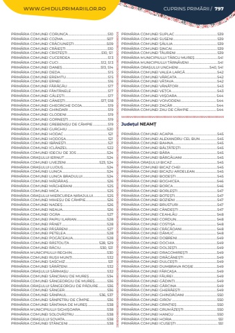 WWW.GHIDULPRIMARIILOR.RO CUPRINS PRIM%u0102RII / 797PRIM%u00c3RIA COMUNEI CORUNCA....................................................510PRIM%u00c3RIA COMUNEI COZMA..........................................................507PRIM%u00c3RIA COMUNEI CR%u00c3CIUNE%u0218TI...........................................509PRIM%u00c3RIA COMUNEI CR%u00c3IE%u0218TI.......................................................510PRIM%u00c3RIA COMUNEI CRISTE%u0218TI.............................................510, 511PRIM%u00c3RIA COMUNEI CUCERDEA ................................................. 513PRIM%u00c3RIA COMUNEI CUCI........................................................512, 513PRIM%u00c3RIA COMUNEI DANE%u0218...................................................513, 514PRIM%u00c3RIA COMUNEI DEDA............................................................... 515PRIM%u00c3RIA COMUNEI EREMITU....................................................... 515PRIM%u00c3RIA COMUNEI ERNEI..............................................................516PRIM%u00c3RIA COMUNEI F%u00c3R%u00c3G%u00c3U.....................................................517PRIM%u00c3RIA COMUNEI F%u00c2NT%u00c2NELE................................................517PRIM%u00c3RIA COMUNEI G%u00c3LE%u0218TI.........................................................517PRIM%u00c3RIA COMUNEI G%u00c3NE%u0218TI...............................................517, 518PRIM%u00c3RIA COMUNEI GHEORGHE DOJA..................................519PRIM%u00c3RIA COMUNEI GHINDARI....................................................519PRIM%u00c3RIA COMUNEI GLODENI......................................................519PRIM%u00c3RIA COMUNEI GORNE%u0218TI....................................................519PRIM%u00c3RIA COMUNEI GREBENI%u0218U DE C%u00c2MPIE ...................519PRIM%u00c3RIA COMUNEI GURGHIU ....................................................520PRIM%u00c3RIA COMUNEI HODAC .......................................................... 521PRIM%u00c3RIA COMUNEI HODO%u0218A....................................................... 521PRIM%u00c3RIA COMUNEI IB%u00c3NE%u0218TI....................................................... 521PRIM%u00c3RIA COMUNEI ICL%u00c3NZEL.................................................... 522PRIM%u00c3RIA COMUNEI IDECIU DE JOS........................................524PRIM%u00c3RIA ORA%u0218ULUI IERNUT ........................................................524PRIM%u00c3RIA COMUNEI LIVEZENI............................................523, 524PRIM%u00c3RIA ORA%u0218ULUI LUDU%u0218..........................................................524PRIM%u00c3RIA COMUNEI LUNCA...........................................................524PRIM%u00c3RIA COMUNEI LUNCA BRADULUI................................524PRIM%u00c3RIA COMUNEI M%u00c3D%u00c3RA%u0218...................................................526PRIM%u00c3RIA COMUNEI M%u00c3GHERANI ............................................. 525PRIM%u00c3RIA COMUNEI MICA ............................................................... 525PRIM%u00c3RIA ORA%u0218ULUI MIERCUREA NIRAJULUI.................. 525PRIM%u00c3RIA COMUNEI MIHE%u0218U DE C%u00c2MPIE............................526PRIM%u00c3RIA COMUNEI NADE%u0218...........................................................526PRIM%u00c3RIA COMUNEI NEAUA...........................................................526PRIM%u00c3RIA COMUNEI OGRA .............................................................527PRIM%u00c3RIA COMUNEI PAPIU ILARIAN........................................528PRIM%u00c3RIA COMUNEI P%u00c3NET............................................................528PRIM%u00c3RIA COMUNEI P%u00c3S%u00c3RENI...................................................527PRIM%u00c3RIA COMUNEI PETELEA......................................................528PRIM%u00c3RIA COMUNEI POG%u00c3CEAUA.............................................528PRIM%u00c3RIA COMUNEI R%u00c3STOLI%u021aA ...................................... 528, 529PRIM%u00c3RIA COMUNEI R%u00c2CIU....................................................530, 531PRIM%u00c3RIA MUNICIPIULUI REGHIN..............................................530PRIM%u00c3RIA COMUNEI RU%u0218II MUN%u021aI.............................................. 532PRIM%u00c3RIA COMUNEI SASCHIZ........................................................ 531PRIM%u00c3RIA COMUNEI S%u00c3R%u00c3%u021aENI.................................................... 532PRIM%u00c3RIA ORA%u0218ULUI S%u00c3RMA%u0218U .................................................. 532PRIM%u00c3RIA COMUNEI S%u00c2NCRAIU DE MURE%u0218.......................534PRIM%u00c3RIA COMUNEI S%u00c2NGEORGIU DE MURE%u0218................536PRIM%u00c3RIA ORA%u0218ULUI S%u00c2NGEORGIU DE P%u00c3DURE...........536PRIM%u00c3RIA COMUNEI S%u00c2NGER........................................................536PRIM%u00c3RIA COMUNEI S%u00c2NPAUL...........................................536, 537PRIM%u00c3RIA COMUNEI S%u00c2NPETRU DE C%u00ceMPIE.......................536PRIM%u00c3RIA COMUNEI S%u00c2NTANA DE MURE%u0218 .........................538PRIM%u00c3RIA MUNICIPIULUI SIGHI%u0218OARA...................................538PRIM%u00c3RIA COMUNEI SOLOV%u00c3STRU...........................................538PRIM%u00c3RIA ORA%u0218ULUI SOVATA........................................................538PRIM%u00c3RIA COMUNEI ST%u00c2NCENI ...................................................538PRIM%u00c3RIA COMUNEI SUPLAC ........................................................539PRIM%u00c3RIA COMUNEI SUSENI..........................................................539PRIM%u00c3RIA COMUNEI %u0218%u00c3ULIA ..........................................................539PRIM%u00c3RIA COMUNEI %u0218INCAI............................................................539PRIM%u00c3RIA COMUNEI T%u00c3URENI ......................................................539PRIM%u00c3RIA MUNICIPIULUI T%u00c2RGU MURE%u0218 ..........